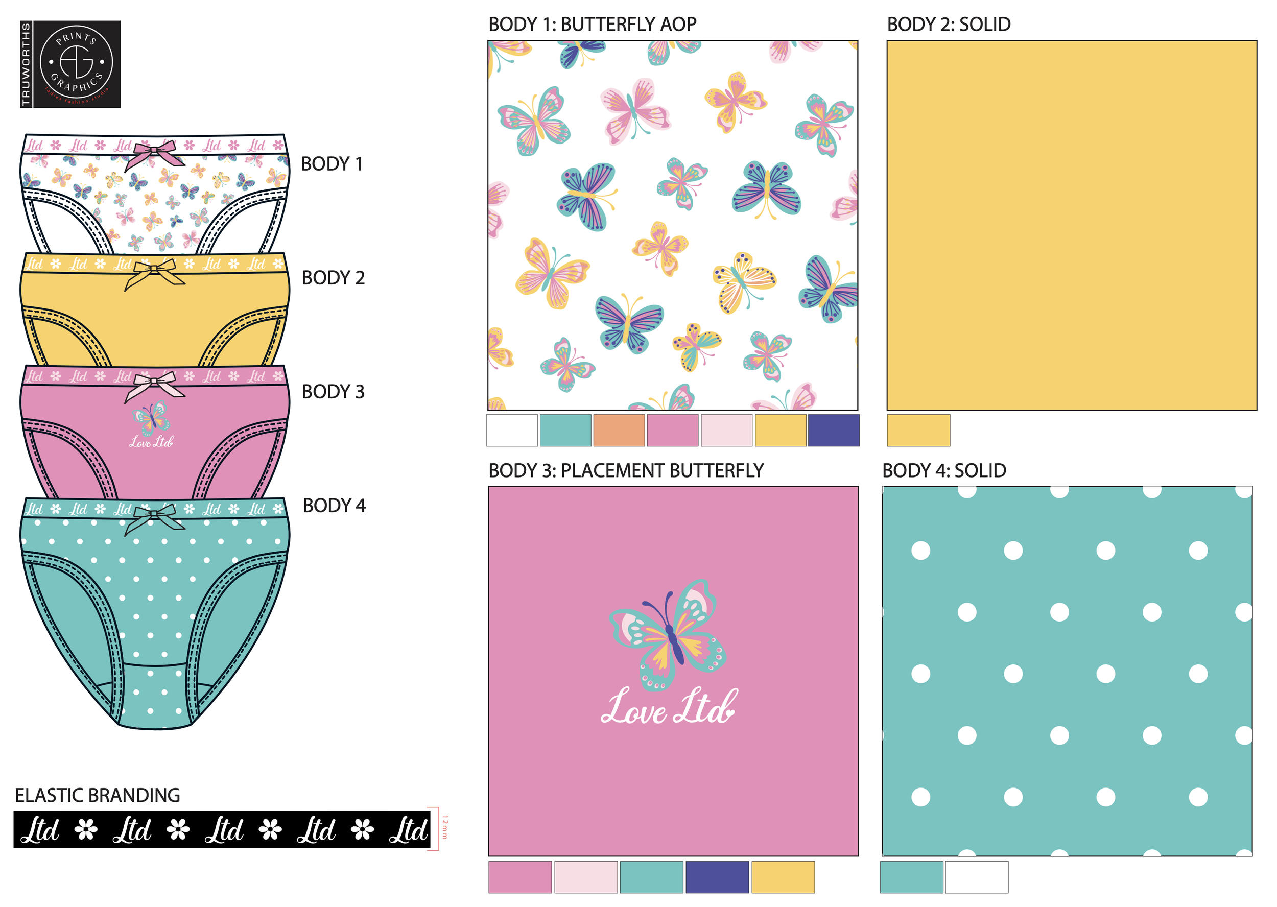 Kidswear Prints and SBA All-over print designs and artworks created for the girls wear and accessories.